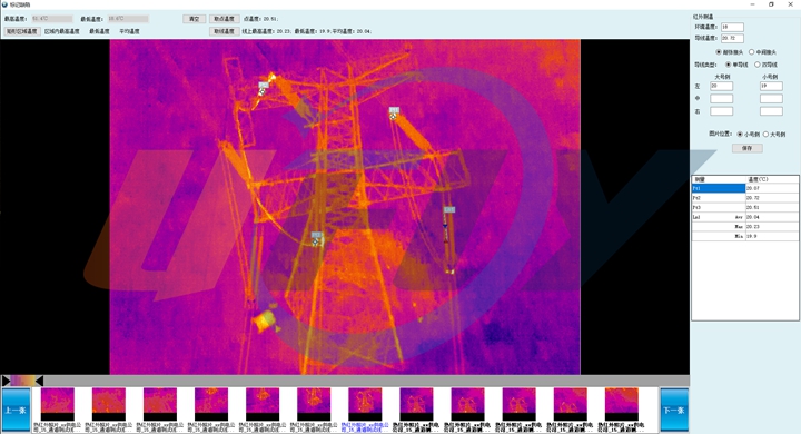 Infrared image analysis system?can quickly classified, named, and analysis?the infrared image, and quickly screen out the abnormal hot spot?according to the temperature,?heat?difference and other conditions, as well as?can directly obtain the highest and lowest temperature in the image. By ing the locations of regions, line segments and points, obatin the different temperature datas?at the locations, quickly marks?defects and hidden dangers, and onekey generates infrared temperature measurement report.?